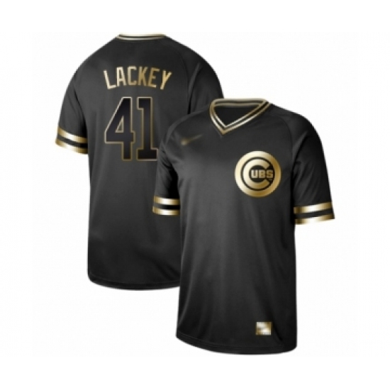 Men's Chicago Cubs #41 John Lackey Authentic Black Gold Fashion Baseball Jersey
