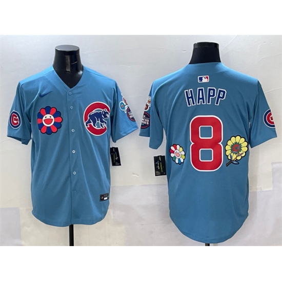 >Men's Chicago Cubs #8 Ian Happ Blue 2025 Tokyo Series 2nd Alternate Limited Stitched Baseball Jersey