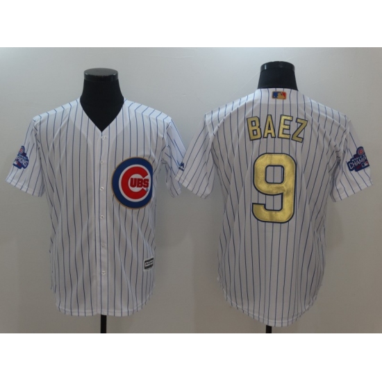 >Men's Chicago Cubs #9 Javier Baez Authentic White Gold Program Flex Base Jersey