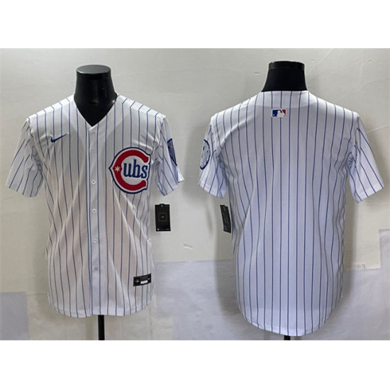 Men's Chicago Cubs Blank White Pinstripe 2nd Alternate Limited Stitched Baseball Jersey