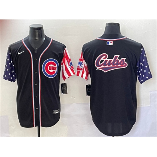 >Men's Chicago Cubs Team Big Logo Black 2025 Independence Day Vapor Premier Limited Stitched Baseball Jersey