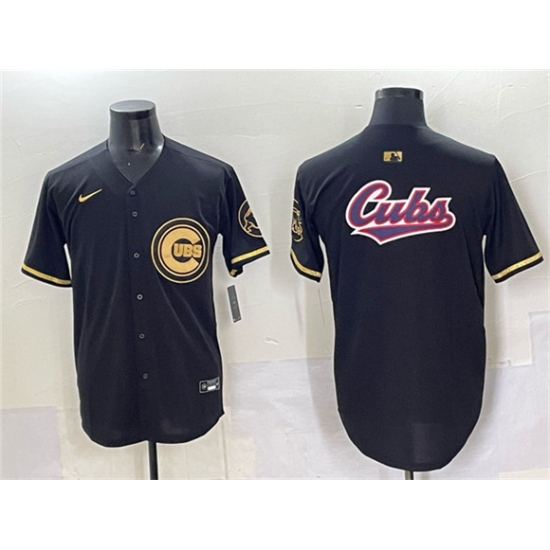 >Men's Chicago Cubs Team Big Logo Black Gold Limited Stitched Baseball Jersey