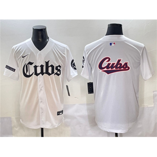 >Men's Chicago Cubs Team Big Logo White 'Gothic North Side Edition' Vapor Premier Limited Stitched Baseball Jersey