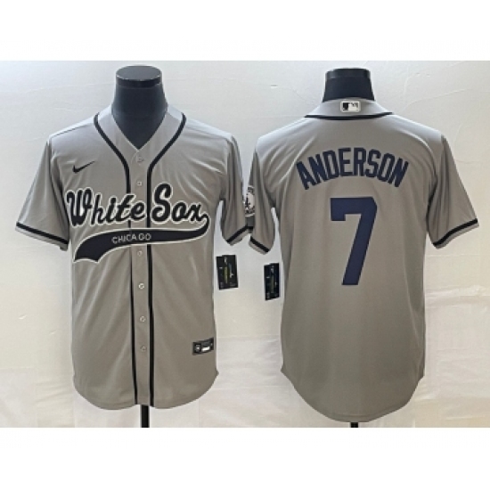 >Men's Chicago White Sox #7 Tim Anderson Grey Cool Base Stitched Baseball Jersey