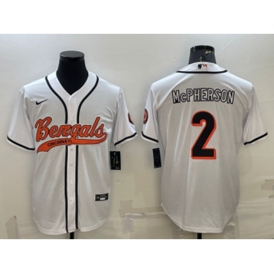 Men's Cincinnati Bengals #2 Evan McPherson White With Patch Cool Base Stitched Baseball Jersey