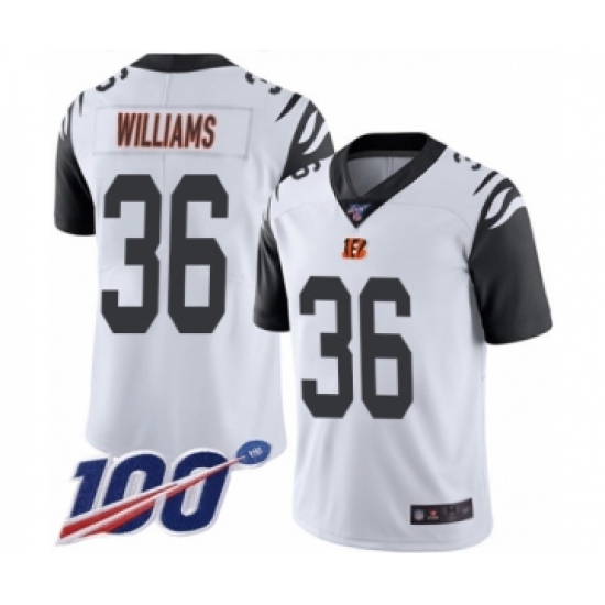 >Men's Cincinnati Bengals #36 Shawn Williams Limited White Rush Vapor Untouchable 100th Season Football Jersey
