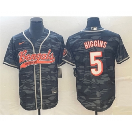 >Men's Cincinnati Bengals #5 Tee Higgins Gray Camo Cool Base Stitched Baseball Jersey