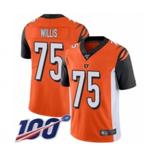 Men's Cincinnati Bengals #75 Jordan Willis Orange Alternate Vapor Untouchable Limited Player 100th Season Football Jersey