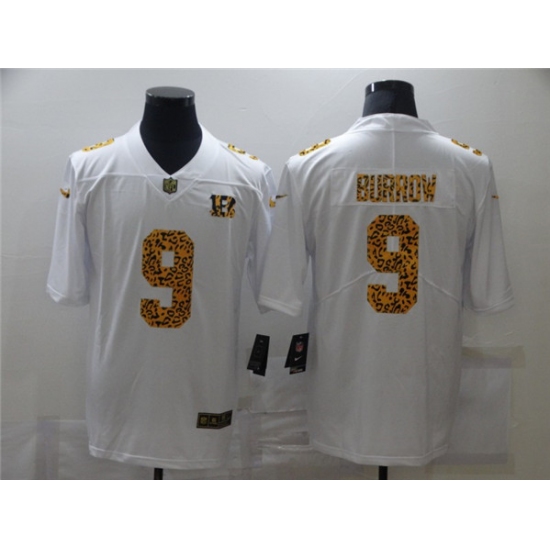 >Men's Cincinnati Bengals #9 Joe Burrow 2020 White Leopard Print Fashion Limited Stitched Jersey