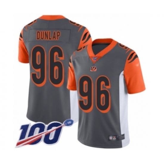 >Men's Cincinnati Bengals #96 Carlos Dunlap Limited Silver Inverted Legend 100th Season Football Jersey