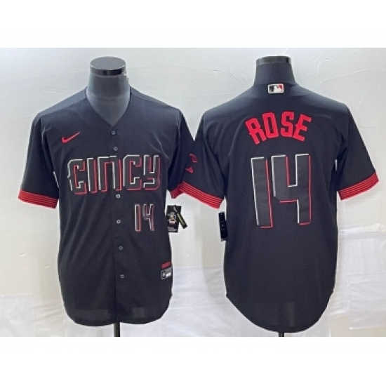 Men's Cincinnati Reds #14 Pete Rose Number Black 2023 City Connect Cool Base Stitched Jersey 2