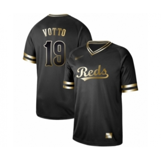 Men's Cincinnati Reds #19 Joey Votto Authentic Black Gold Fashion Baseball Jersey