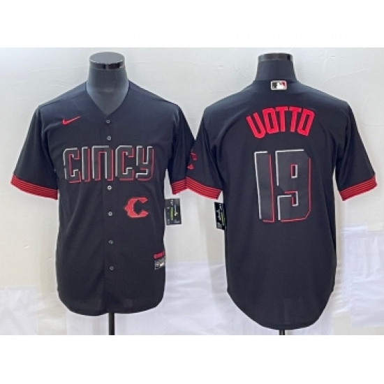 >Men's Cincinnati Reds #19 Joey Votto Black 2023 City Connect Cool Base Stitched Jersey1