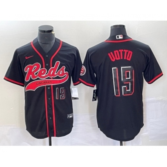 >Men's Cincinnati Reds #19 Joey Votto Number Black 2023 City Connect Cool Base Stitched Jersey