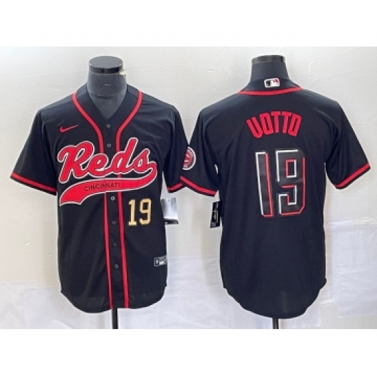 >Men's Cincinnati Reds #19 Joey Votto Number Black 2023 City Connect Cool Base Stitched Jerseys