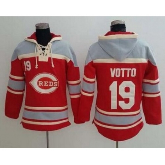 >Men's Cincinnati Reds #19 Joey Votto Red Baseball MLB Hoodie