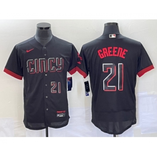 Men's Cincinnati Reds #21 Hunter Greene Number Black 2023 City Connect Flex Base Stitched Jersey