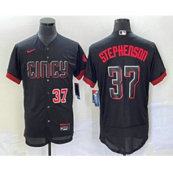 >Men's Cincinnati Reds #37 Tyler Stephenson Number Black 2023 City Connect Flex Base Stitched Jersey 2