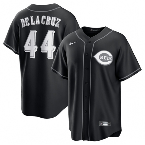 >Men's Cincinnati Reds #44 Elly De La Cruz Black Lights Out Limited Stitched Baseball Jersey