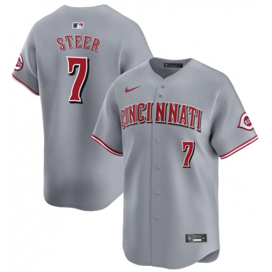 >Men's Cincinnati Reds #7 Spencer Steer Gray Away Limited Stitched Baseball Jersey
