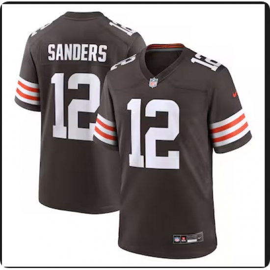 >Men's Cleveland Browns #12 Shedeur Sanders Nike Brown 2025 NFL Draft Game Jersey