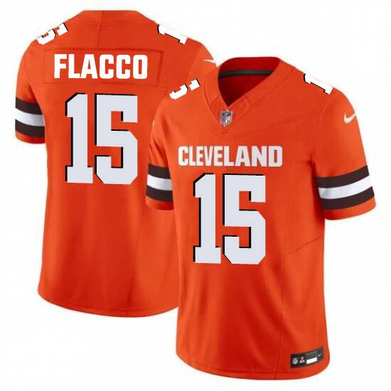 Men's Cleveland Browns #15 Flacco Orange 2025 Vapor Limited Football Stitched Jersey