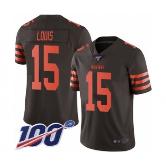>Men's Cleveland Browns #15 Ricardo Louis Limited Brown Rush Vapor Untouchable 100th Season Football Jersey