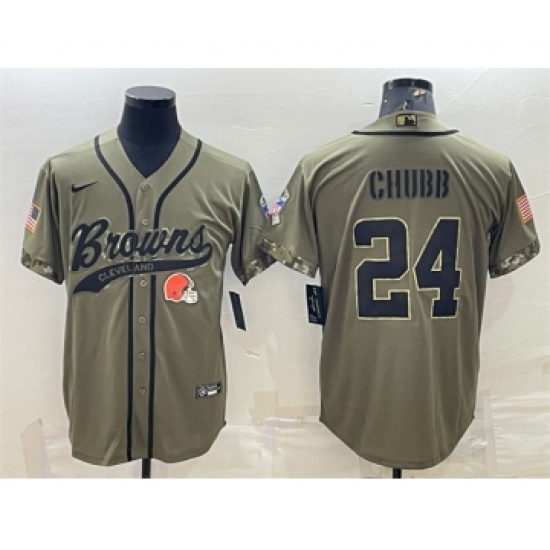 Men's Cleveland Browns #24 Nick Chubb Olive 2022 Salute To Service Cool Base Stitched Baseball Jersey