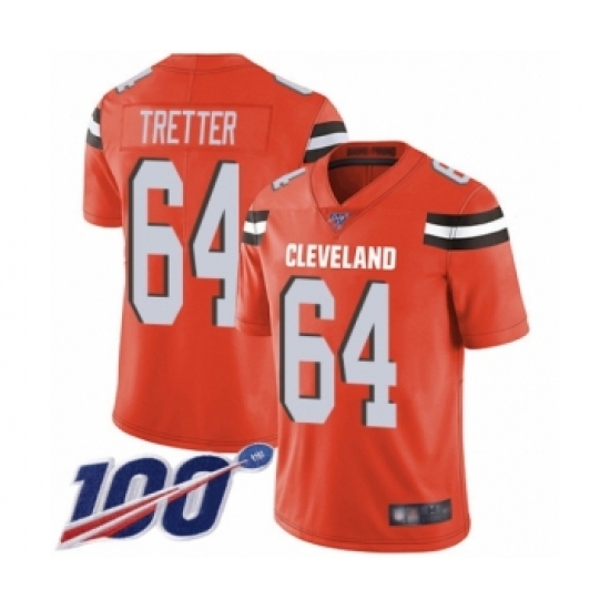 >Men's Cleveland Browns #64 JC Tretter Orange Alternate Vapor Untouchable Limited Player 100th Season Football Jersey