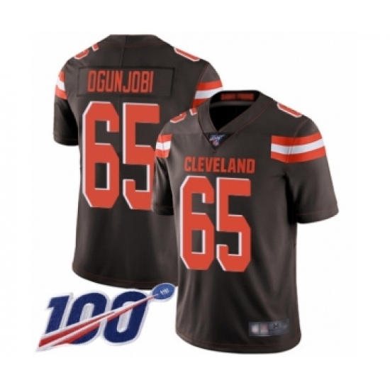 >Men's Cleveland Browns #65 Larry Ogunjobi Brown Team Color Vapor Untouchable Limited Player 100th Season Football Jersey