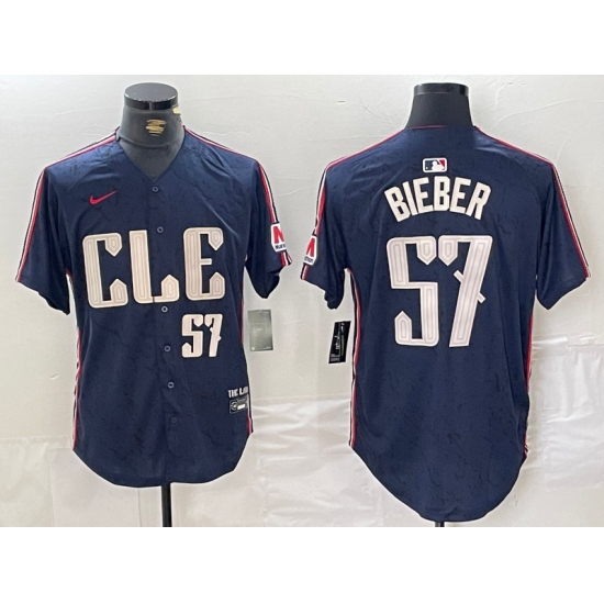 >Men's Cleveland Guardians #57 Shane Bieber Number Navy 2024 City Connect Limited Stitched Jersey