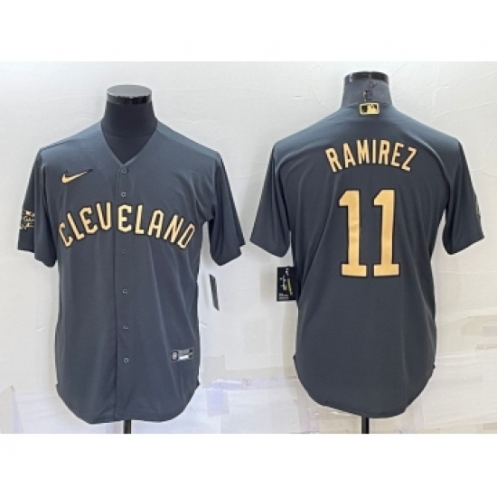 >Men's Cleveland Indians #11 Jose Ramirez Grey 2022 All Star Stitched Cool Base Nike Jersey