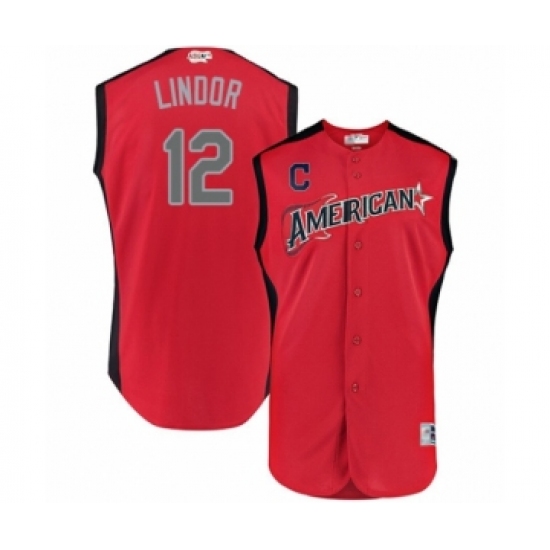 Men's Cleveland Indians #12 Francisco Lindor Authentic Red American League 2019 Baseball All-Star Jersey