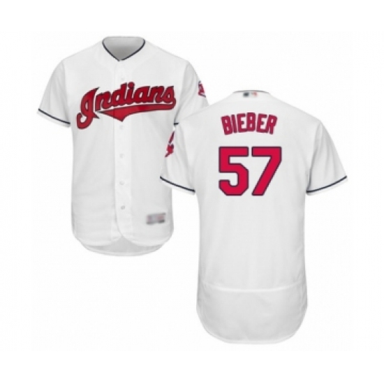 Men's Cleveland Indians #57 Shane Bieber White Home Flex Base Authentic Collection Baseball Jersey