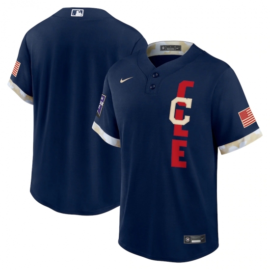 >Men's Cleveland Indians Blank Nike Navy 2021 MLB All-Star Game Replica Jersey