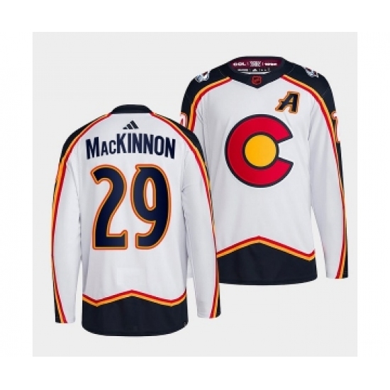 Men's Colorado Avalanche #29 Nathan MacKinnon White 2022-23 Reverse Retro Stitched Jersey