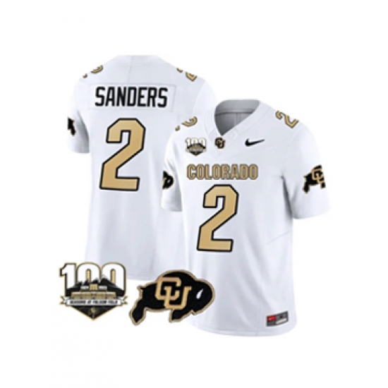 >Men's Colorado Buffaloes #2 Sanders White Vapor Stitched Jersey - 100th Seasons At Folsom Field