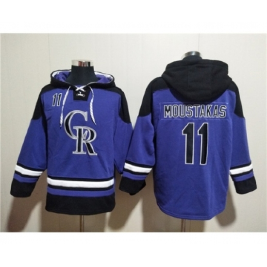 Home>Hoodie>MLB Hoodie>Colorado Rockies>Men's Colorado Rockies #11 Mike Moustakas Purple Ageless Must-Have Lace-Up Pullover Hoodie