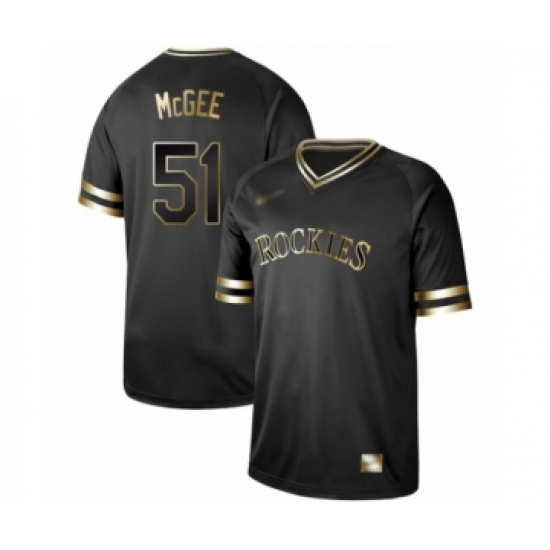 >Men's Colorado Rockies #51 Jake McGee Authentic Black Gold Fashion Baseball Jersey