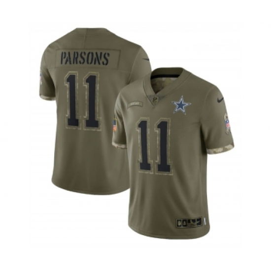 >Men's Dallas Cowboys #11 Micah Parsons 2022 Olive Salute To Service Limited Stitched Jersey