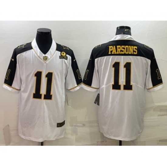 Men's Dallas Cowboys #11 Micah Parsons White Gold Edition With 1960 Patch Limited Stitched Football Jersey