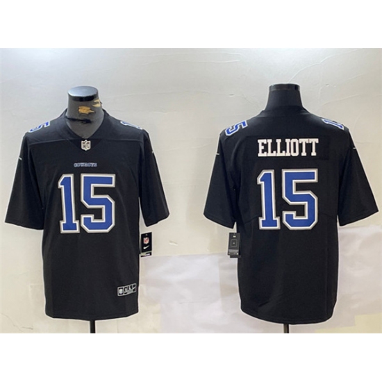 >Men's Dallas Cowboys #15 Ezekiel Elliott Black Throwback Vapor Untouchable Limited Stitched Jersey