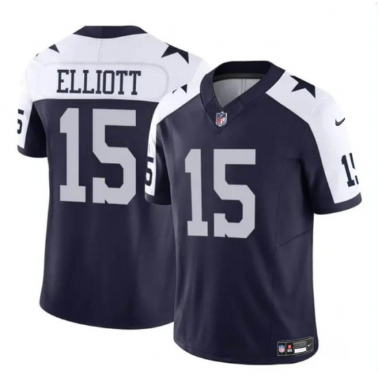 Men's Dallas Cowboys #15 Ezekiel Elliott Navy White 2023 F.U.S.E Thanksgiving Vapor Limited Football Stitched Jersey
