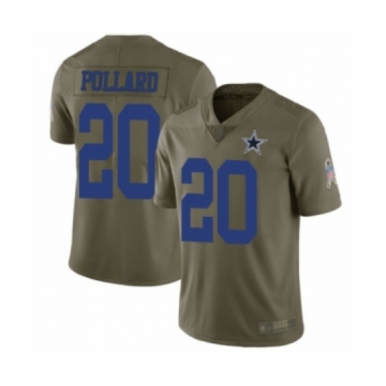 >Men's Dallas Cowboys #20 Tony Pollard Limited Olive 2017 Salute to Service Football Jersey