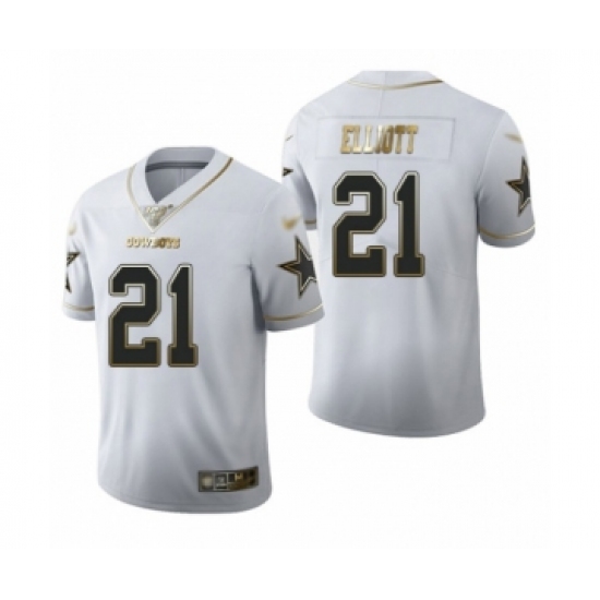 Men's Dallas Cowboys #21 Ezekiel Elliott White Golden Edition Limited Football Jersey
