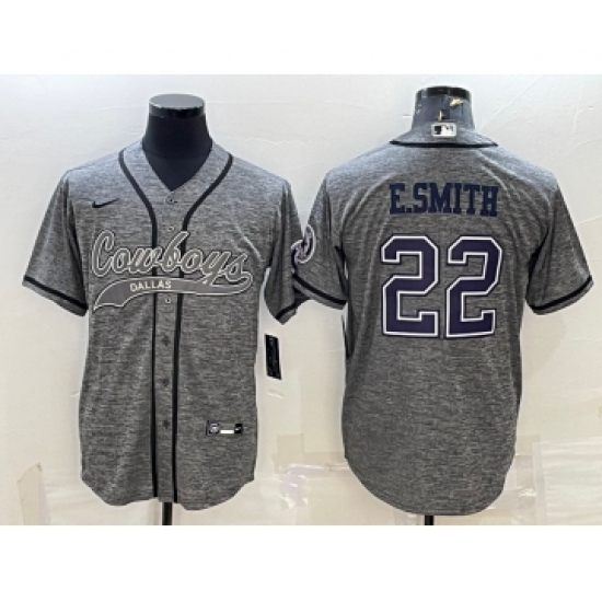 >Men's Dallas Cowboys #22 Emmitt Smith Grey Gridiron With Patch Cool Base Stitched Baseball Jersey