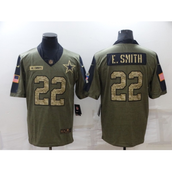 >Men's Dallas Cowboys #22 Emmitt Smith Nike Camo 2021 Salute To Service Limited Player Jersey