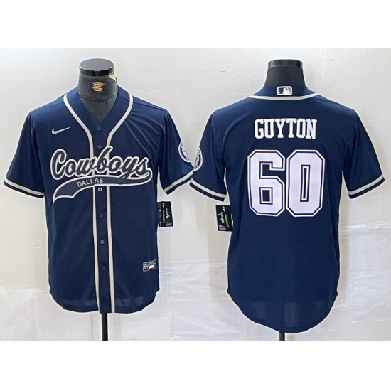 >Men's Dallas Cowboys #60 Tyler Guyton Navy Cool Base Stitched Baseball Jersey