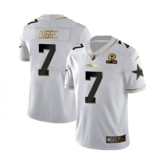 >Men's Dallas Cowboys #7 Trevon Diggs White Golden Edition With 1960 Patch Limited Stitched Jersey