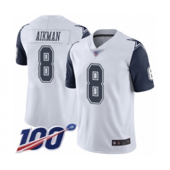 Men's Dallas Cowboys #8 Troy Aikman Limited White Rush Vapor Untouchable 100th Season Football Jersey